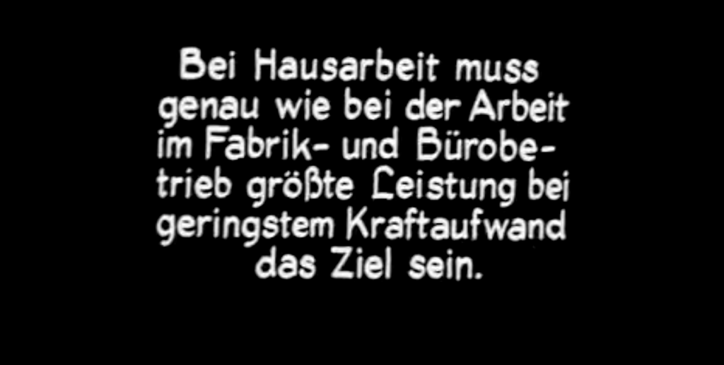 法兰克福厨房宣传片中的介绍:“家务劳动和工厂、办公室工作一样,目标都是以最小的努力获得最大的成效。”