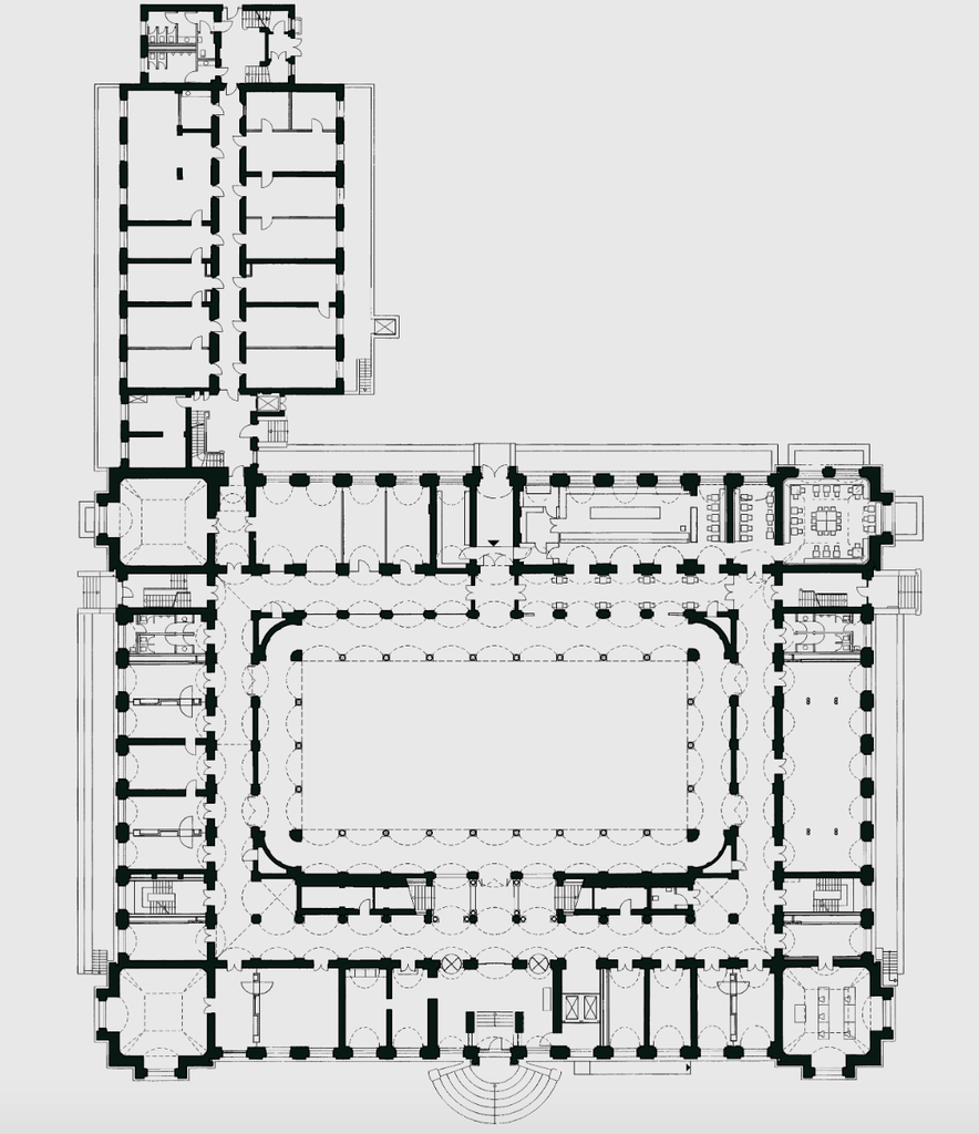 奥古斯特· 蒂德(August Tiede)设计的四翼围合天井式布局。